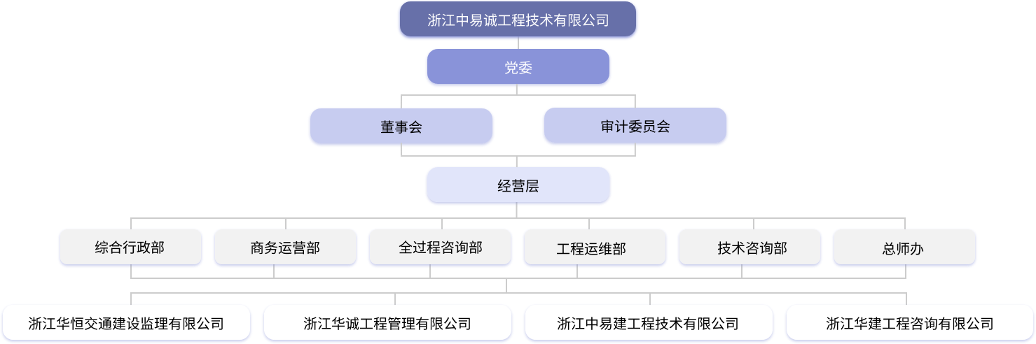 中易诚技术集团由浙江华恒交通建设监理有限公司、浙江华诚工程管理有限公司、浙江中易建工程技术有限公司(原浙江华汇工程检测有限公司)、浙江华建工程咨询有限公司4家子公司联合发起成立,是绍兴地区最具实力的监理、检测和咨询企业。